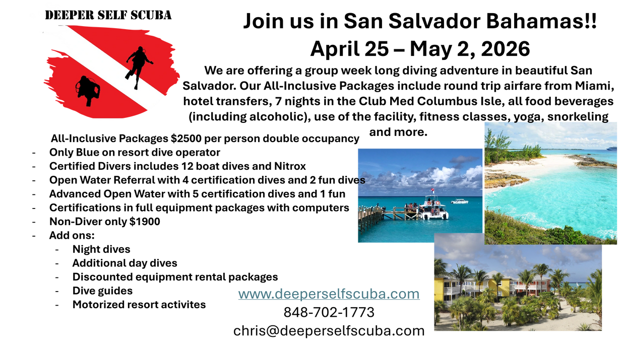 All-inclusive resort and dive package. Let us make all of the coordination so you can enjoy the vacation and diving. Whether for certification dives or just for fun, Jamaica! More details coming soon!